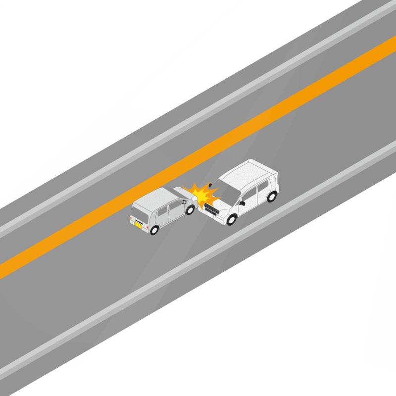 ・イラストに使用している各要素(車、背景、車、天候、信号、衝突地点など)は、代表的なイメージをイラスト化しており、色や形状等含め現実の事故の状況とは異なります。あくまで、事故のイメージとして参考までにご活用ください。
