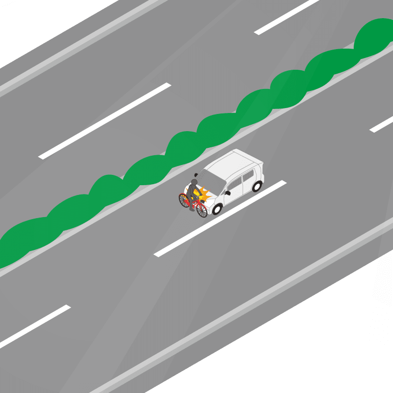 ・イラストに使用している各要素(車、背景、車、天候、信号、衝突地点など)は、代表的なイメージをイラスト化しており、色や形状等含め現実の事故の状況とは異なります。あくまで、事故のイメージとして参考までにご活用ください。