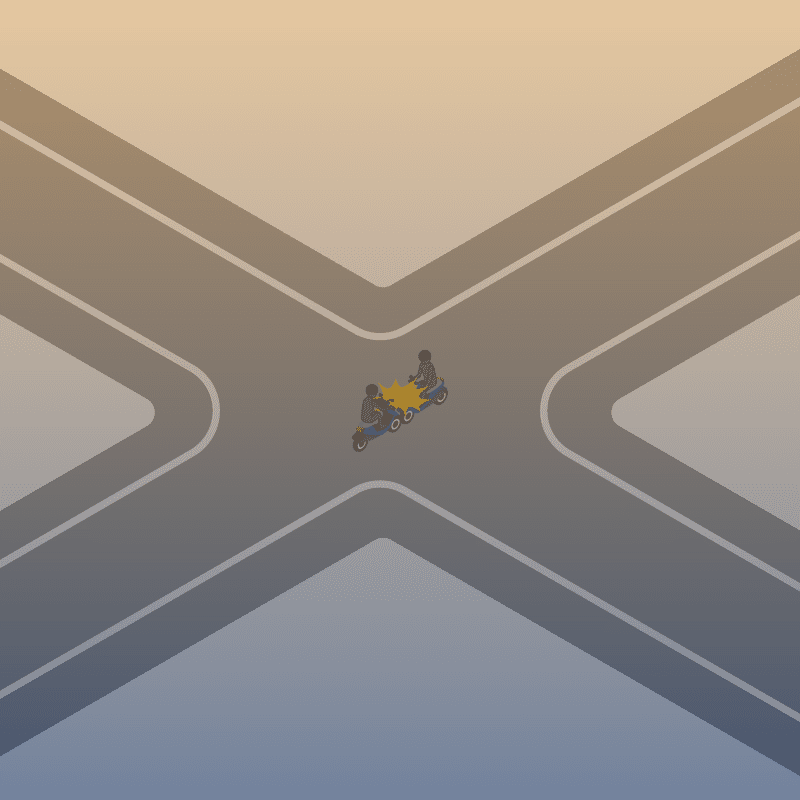 ・イラストに使用している各要素(車、背景、車、天候、信号、衝突地点など)は、代表的なイメージをイラスト化しており、色や形状等含め現実の事故の状況とは異なります。あくまで、事故のイメージとして参考までにご活用ください。