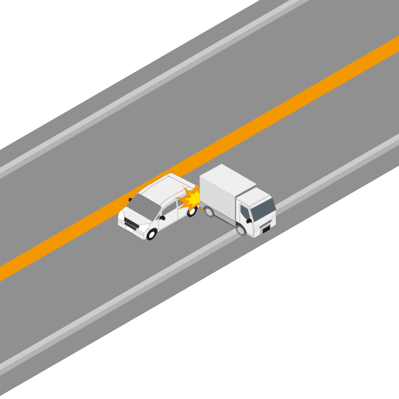 ・イラストに使用している各要素(車、背景、車、天候、信号、衝突地点など)は、代表的なイメージをイラスト化しており、色や形状等含め現実の事故の状況とは異なります。あくまで、事故のイメージとして参考までにご活用ください。