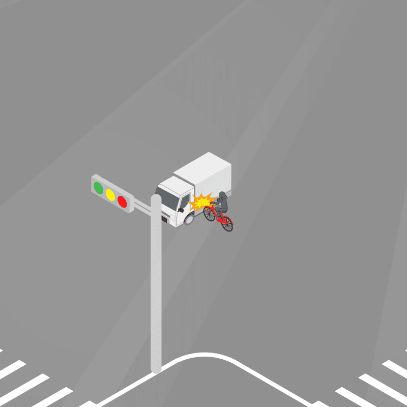・イラストに使用している各要素(車、背景、車、天候、信号、衝突地点など)は、代表的なイメージをイラスト化しており、色や形状等含め現実の事故の状況とは異なります。あくまで、事故のイメージとして参考までにご活用ください。