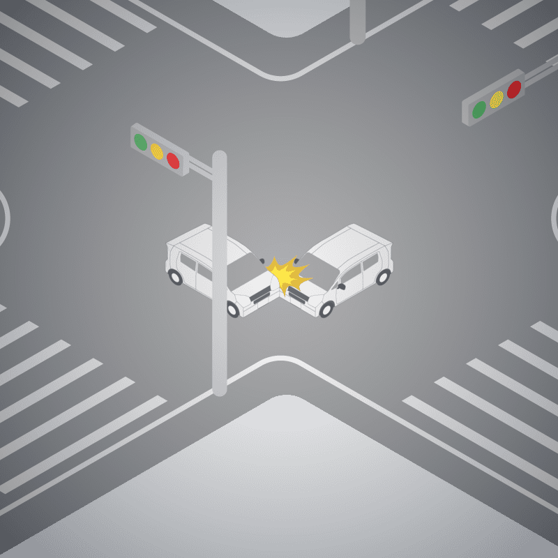 ・イラストに使用している各要素(車、背景、車、天候、信号、衝突地点など)は、代表的なイメージをイラスト化しており、色や形状等含め現実の事故の状況とは異なります。あくまで、事故のイメージとして参考までにご活用ください。