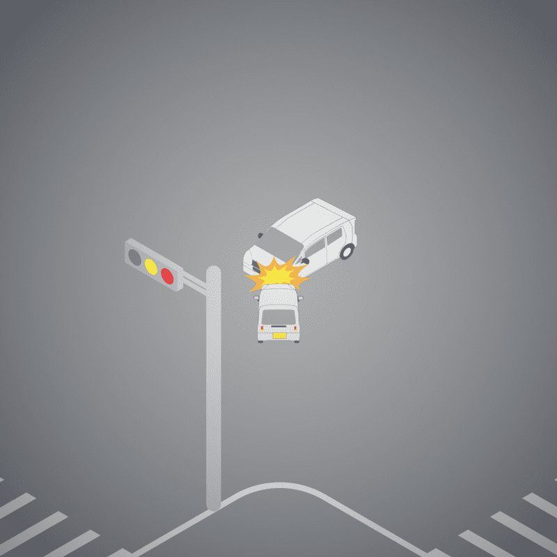 ・イラストに使用している各要素(車、背景、車、天候、信号、衝突地点など)は、代表的なイメージをイラスト化しており、色や形状等含め現実の事故の状況とは異なります。あくまで、事故のイメージとして参考までにご活用ください。