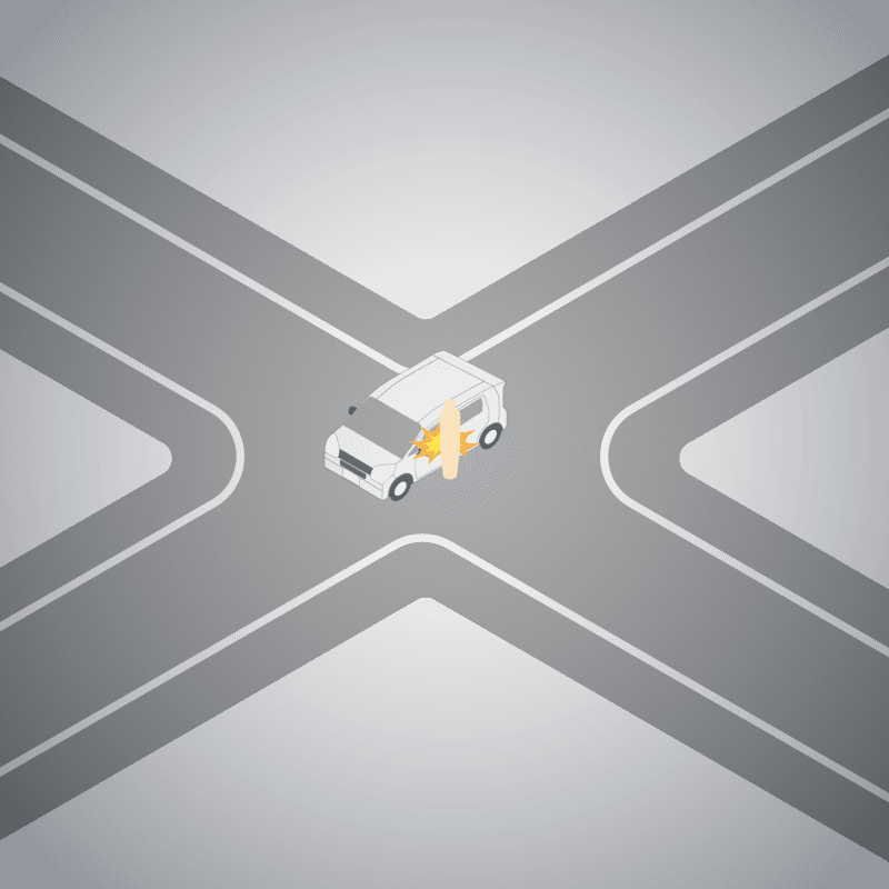 ・イラストに使用している各要素(車、背景、車、天候、信号、衝突地点など)は、代表的なイメージをイラスト化しており、色や形状等含め現実の事故の状況とは異なります。あくまで、事故のイメージとして参考までにご活用ください。