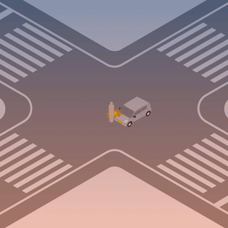 ・イラストに使用している各要素(車、背景、車、天候、信号、衝突地点など)は、代表的なイメージをイラスト化しており、色や形状等含め現実の事故の状況とは異なります。あくまで、事故のイメージとして参考までにご活用ください。