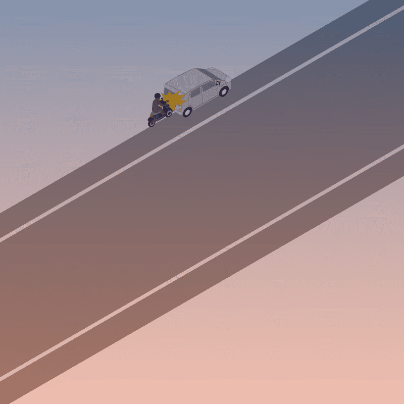・イラストに使用している各要素(車、背景、車、天候、信号、衝突地点など)は、代表的なイメージをイラスト化しており、色や形状等含め現実の事故の状況とは異なります。あくまで、事故のイメージとして参考までにご活用ください。
