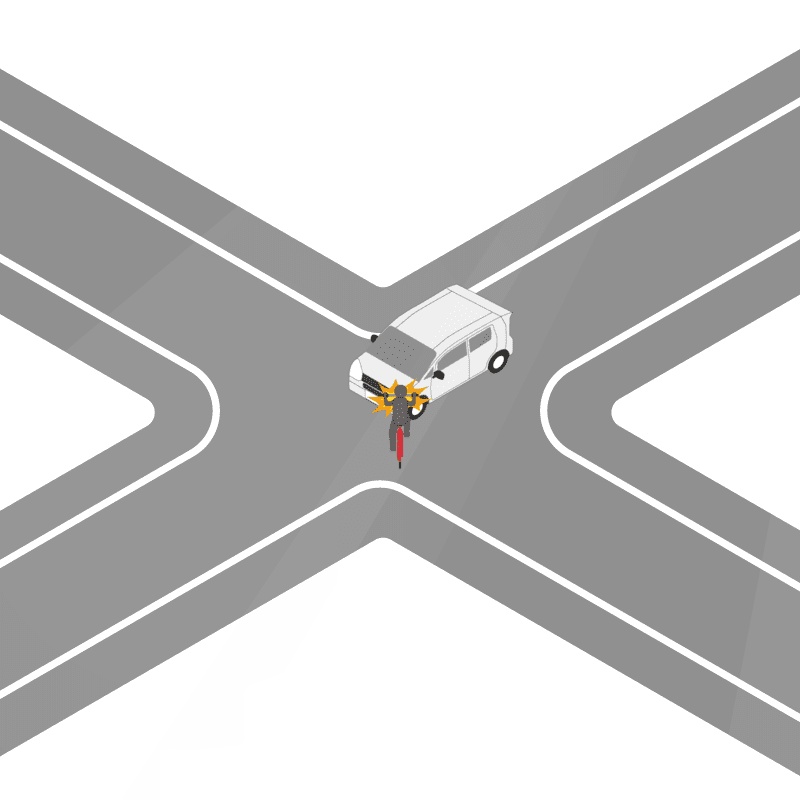 ・イラストに使用している各要素(車、背景、車、天候、信号、衝突地点など)は、代表的なイメージをイラスト化しており、色や形状等含め現実の事故の状況とは異なります。あくまで、事故のイメージとして参考までにご活用ください。