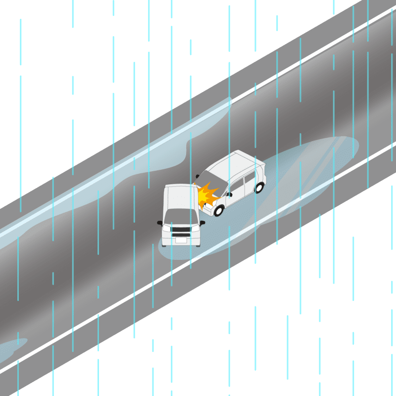 ・イラストに使用している各要素(車、背景、車、天候、信号、衝突地点など)は、代表的なイメージをイラスト化しており、色や形状等含め現実の事故の状況とは異なります。あくまで、事故のイメージとして参考までにご活用ください。