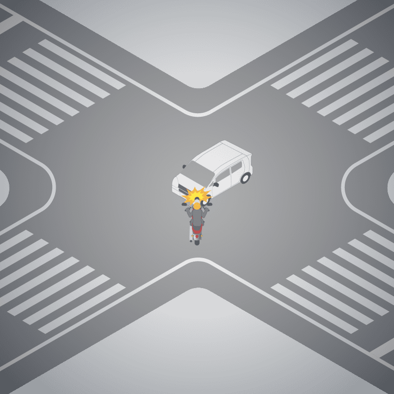 ・イラストに使用している各要素(車、背景、車、天候、信号、衝突地点など)は、代表的なイメージをイラスト化しており、色や形状等含め現実の事故の状況とは異なります。あくまで、事故のイメージとして参考までにご活用ください。