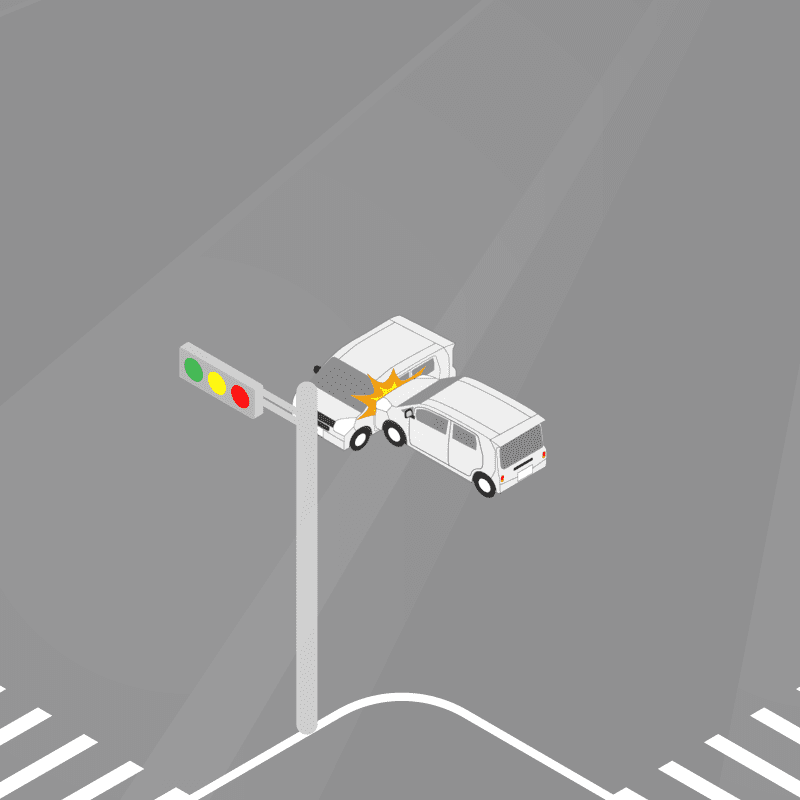 ・イラストに使用している各要素(車、背景、車、天候、信号、衝突地点など)は、代表的なイメージをイラスト化しており、色や形状等含め現実の事故の状況とは異なります。あくまで、事故のイメージとして参考までにご活用ください。