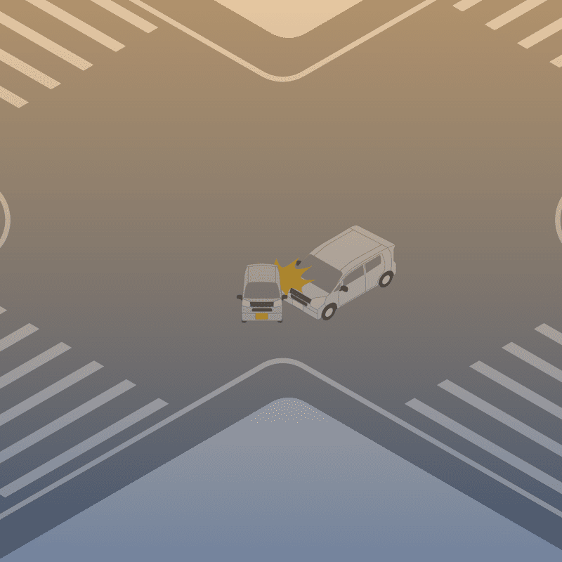 ・イラストに使用している各要素(車、背景、車、天候、信号、衝突地点など)は、代表的なイメージをイラスト化しており、色や形状等含め現実の事故の状況とは異なります。あくまで、事故のイメージとして参考までにご活用ください。