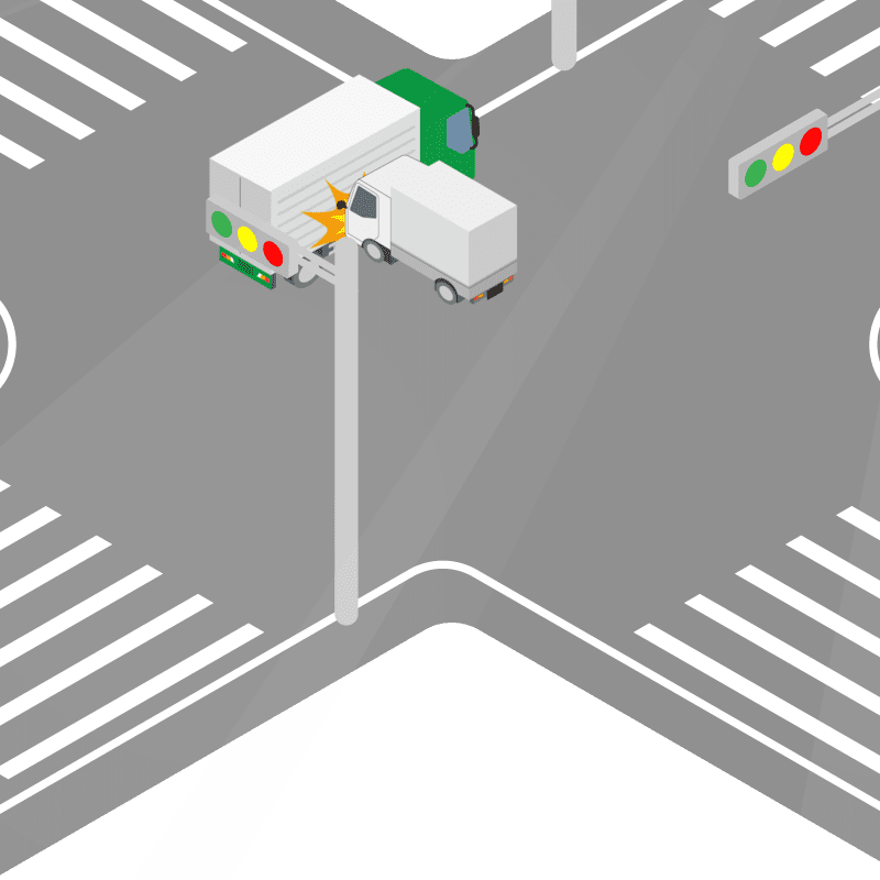 ・イラストに使用している各要素(車、背景、車、天候、信号、衝突地点など)は、代表的なイメージをイラスト化しており、色や形状等含め現実の事故の状況とは異なります。あくまで、事故のイメージとして参考までにご活用ください。