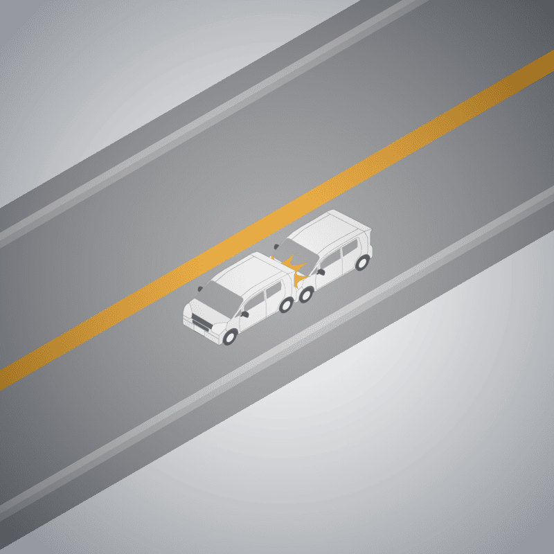 ・イラストに使用している各要素(車、背景、車、天候、信号、衝突地点など)は、代表的なイメージをイラスト化しており、色や形状等含め現実の事故の状況とは異なります。あくまで、事故のイメージとして参考までにご活用ください。