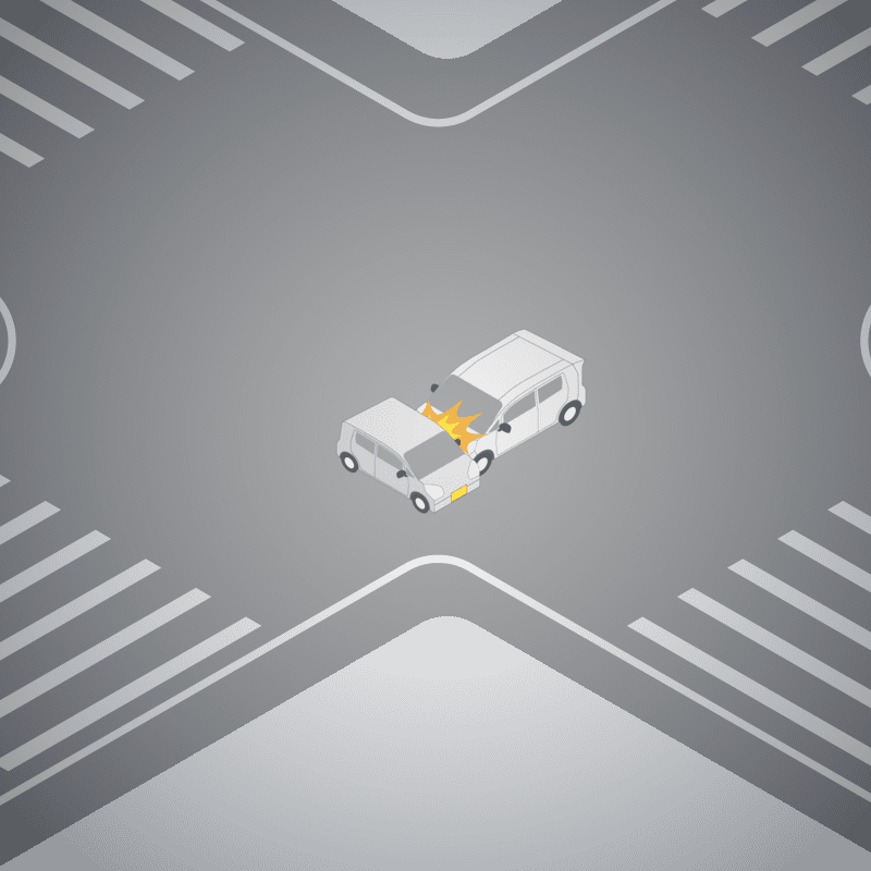・イラストに使用している各要素(車、背景、車、天候、信号、衝突地点など)は、代表的なイメージをイラスト化しており、色や形状等含め現実の事故の状況とは異なります。あくまで、事故のイメージとして参考までにご活用ください。