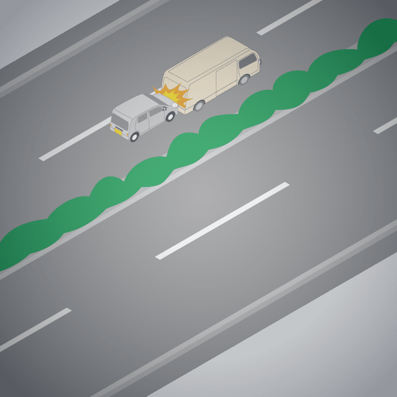 ・イラストに使用している各要素(車、背景、車、天候、信号、衝突地点など)は、代表的なイメージをイラスト化しており、色や形状等含め現実の事故の状況とは異なります。あくまで、事故のイメージとして参考までにご活用ください。
