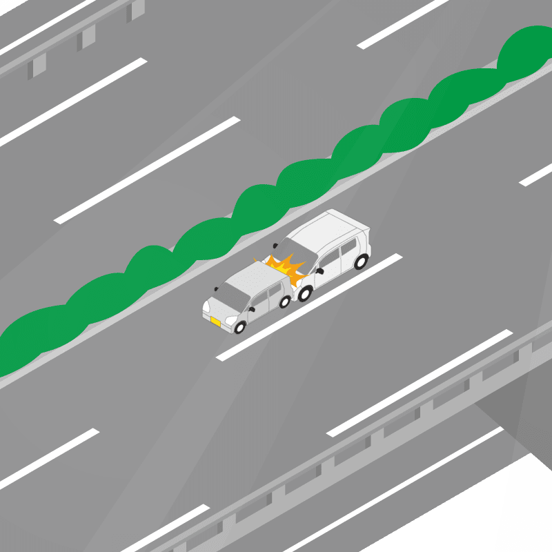 ・イラストに使用している各要素(車、背景、車、天候、信号、衝突地点など)は、代表的なイメージをイラスト化しており、色や形状等含め現実の事故の状況とは異なります。あくまで、事故のイメージとして参考までにご活用ください。