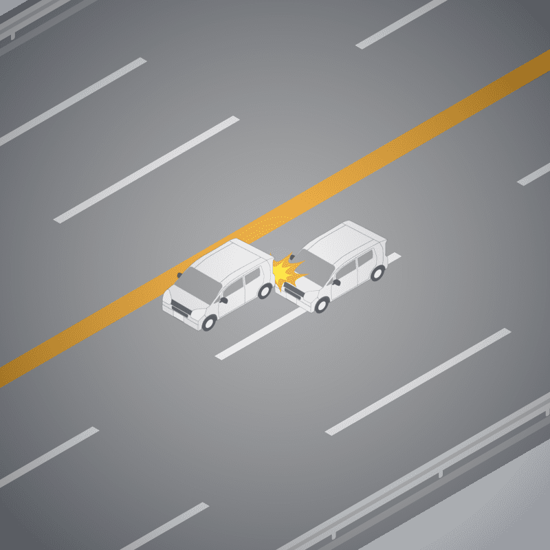 ・イラストに使用している各要素(車、背景、車、天候、信号、衝突地点など)は、代表的なイメージをイラスト化しており、色や形状等含め現実の事故の状況とは異なります。あくまで、事故のイメージとして参考までにご活用ください。
