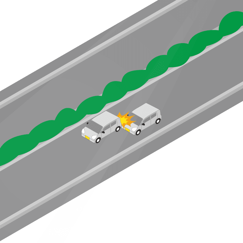 ・イラストに使用している各要素(車、背景、車、天候、信号、衝突地点など)は、代表的なイメージをイラスト化しており、色や形状等含め現実の事故の状況とは異なります。あくまで、事故のイメージとして参考までにご活用ください。