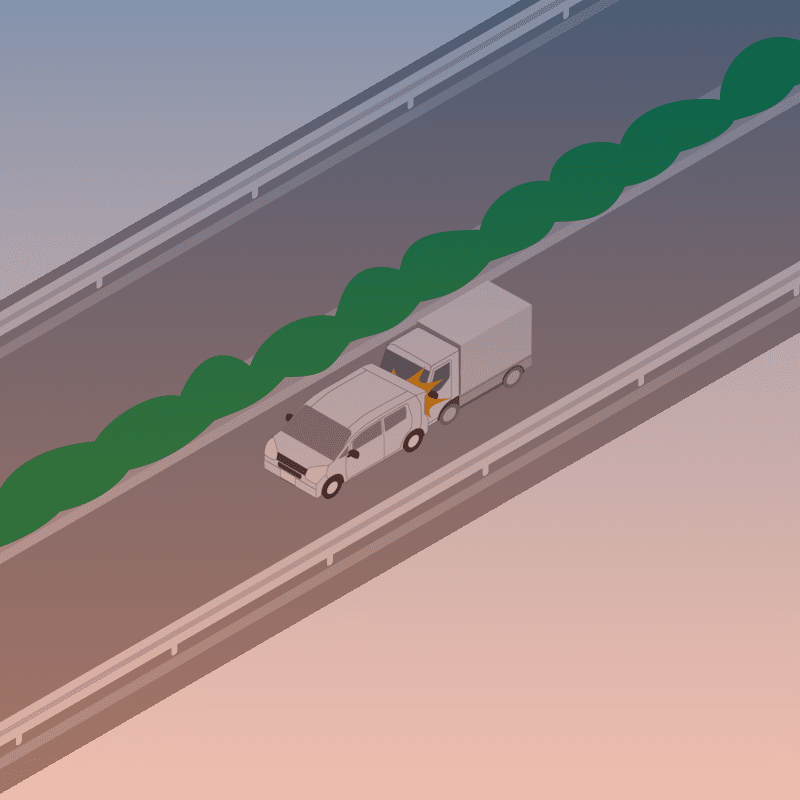 ・イラストに使用している各要素(車、背景、車、天候、信号、衝突地点など)は、代表的なイメージをイラスト化しており、色や形状等含め現実の事故の状況とは異なります。あくまで、事故のイメージとして参考までにご活用ください。