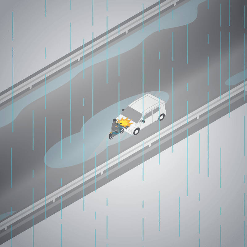 ・イラストに使用している各要素(車、背景、車、天候、信号、衝突地点など)は、代表的なイメージをイラスト化しており、色や形状等含め現実の事故の状況とは異なります。あくまで、事故のイメージとして参考までにご活用ください。