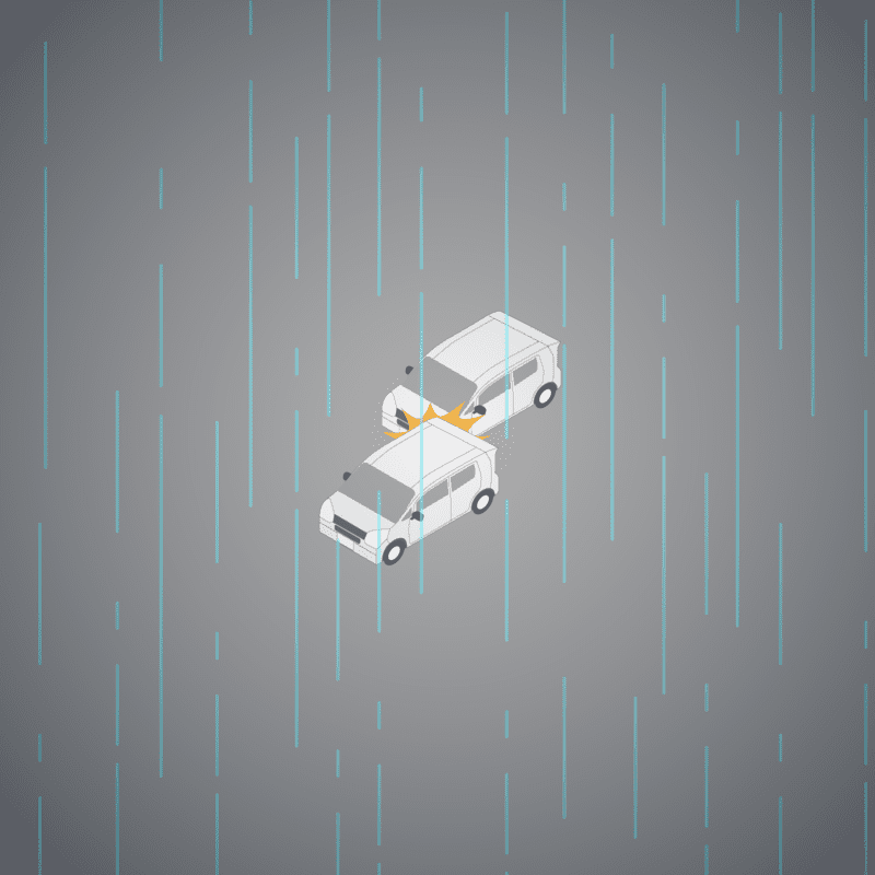 ・イラストに使用している各要素(車、背景、車、天候、信号、衝突地点など)は、代表的なイメージをイラスト化しており、色や形状等含め現実の事故の状況とは異なります。あくまで、事故のイメージとして参考までにご活用ください。