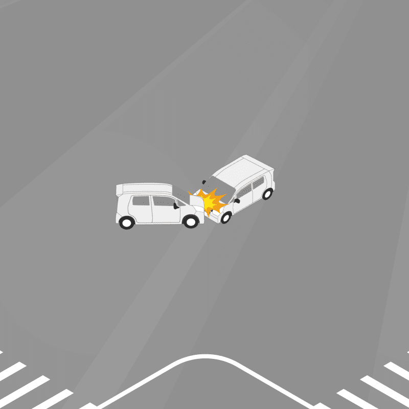 ・イラストに使用している各要素(車、背景、車、天候、信号、衝突地点など)は、代表的なイメージをイラスト化しており、色や形状等含め現実の事故の状況とは異なります。あくまで、事故のイメージとして参考までにご活用ください。