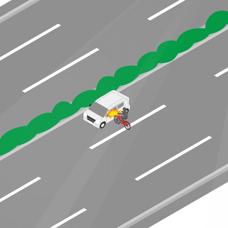 ・イラストに使用している各要素(車、背景、車、天候、信号、衝突地点など)は、代表的なイメージをイラスト化しており、色や形状等含め現実の事故の状況とは異なります。あくまで、事故のイメージとして参考までにご活用ください。