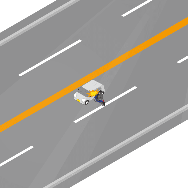 ・イラストに使用している各要素(車、背景、車、天候、信号、衝突地点など)は、代表的なイメージをイラスト化しており、色や形状等含め現実の事故の状況とは異なります。あくまで、事故のイメージとして参考までにご活用ください。
