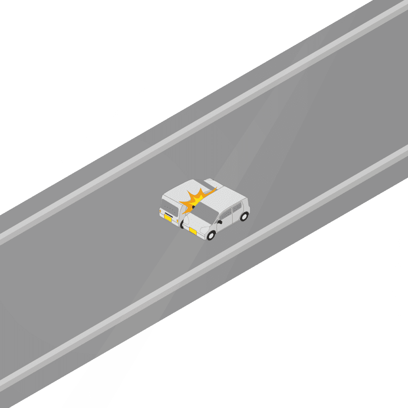 ・イラストに使用している各要素(車、背景、車、天候、信号、衝突地点など)は、代表的なイメージをイラスト化しており、色や形状等含め現実の事故の状況とは異なります。あくまで、事故のイメージとして参考までにご活用ください。