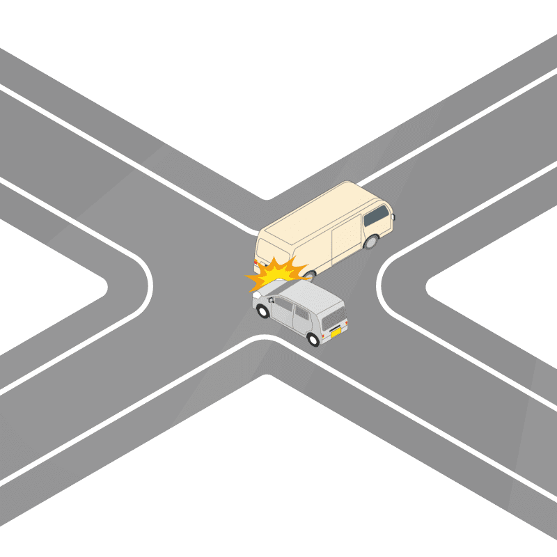 ・イラストに使用している各要素(車、背景、車、天候、信号、衝突地点など)は、代表的なイメージをイラスト化しており、色や形状等含め現実の事故の状況とは異なります。あくまで、事故のイメージとして参考までにご活用ください。