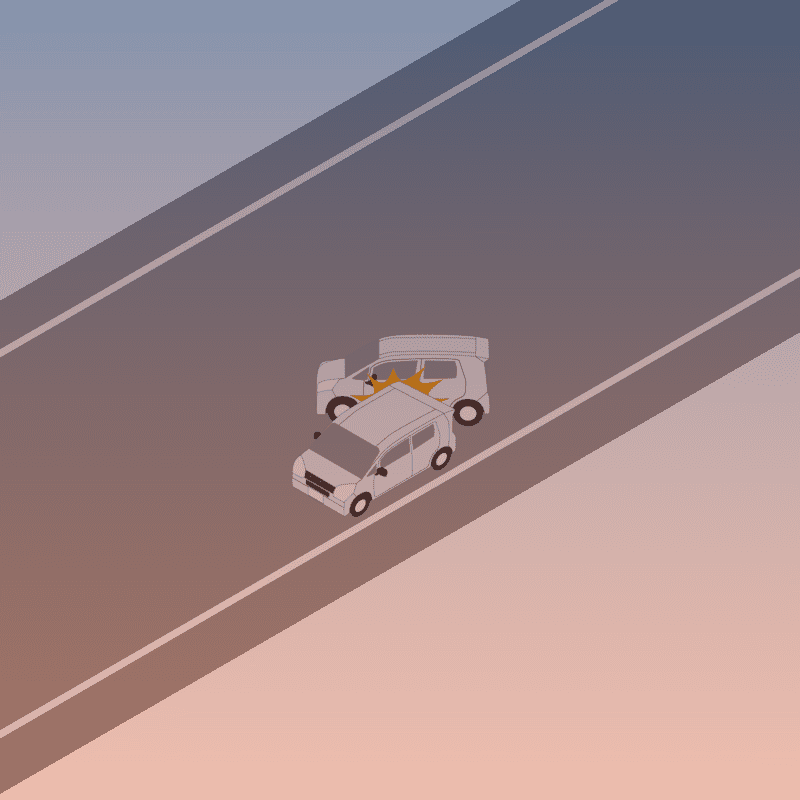 ・イラストに使用している各要素(車、背景、車、天候、信号、衝突地点など)は、代表的なイメージをイラスト化しており、色や形状等含め現実の事故の状況とは異なります。あくまで、事故のイメージとして参考までにご活用ください。