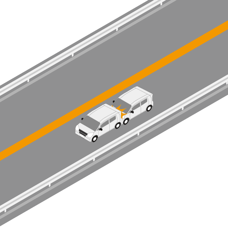 ・イラストに使用している各要素(車、背景、車、天候、信号、衝突地点など)は、代表的なイメージをイラスト化しており、色や形状等含め現実の事故の状況とは異なります。あくまで、事故のイメージとして参考までにご活用ください。