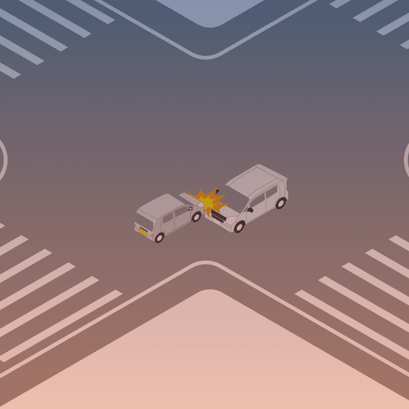 ・イラストに使用している各要素(車、背景、車、天候、信号、衝突地点など)は、代表的なイメージをイラスト化しており、色や形状等含め現実の事故の状況とは異なります。あくまで、事故のイメージとして参考までにご活用ください。