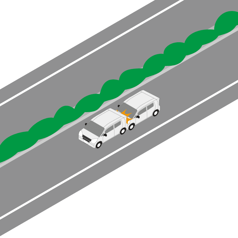 ・イラストに使用している各要素(車、背景、車、天候、信号、衝突地点など)は、代表的なイメージをイラスト化しており、色や形状等含め現実の事故の状況とは異なります。あくまで、事故のイメージとして参考までにご活用ください。