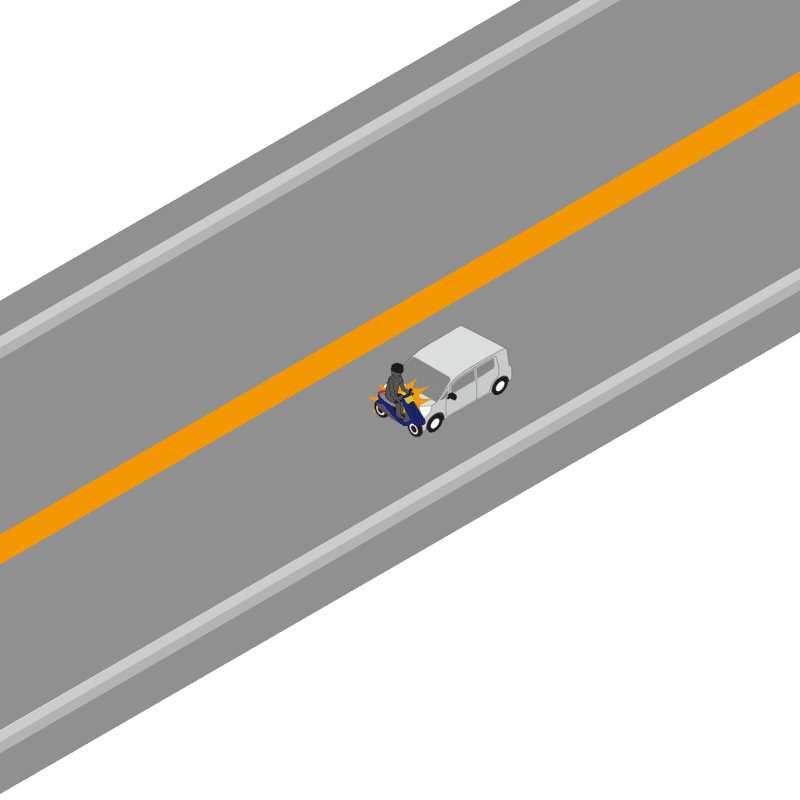 ・イラストに使用している各要素(車、背景、車、天候、信号、衝突地点など)は、代表的なイメージをイラスト化しており、色や形状等含め現実の事故の状況とは異なります。あくまで、事故のイメージとして参考までにご活用ください。