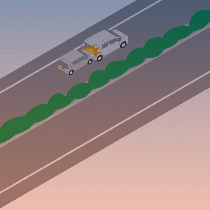 ・イラストに使用している各要素(車、背景、車、天候、信号、衝突地点など)は、代表的なイメージをイラスト化しており、色や形状等含め現実の事故の状況とは異なります。あくまで、事故のイメージとして参考までにご活用ください。