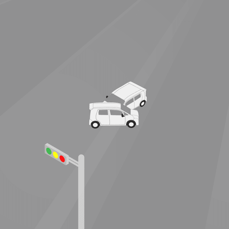 ・イラストに使用している各要素(車、背景、車、天候、信号、衝突地点など)は、代表的なイメージをイラスト化しており、色や形状等含め現実の事故の状況とは異なります。あくまで、事故のイメージとして参考までにご活用ください。
