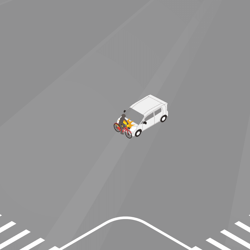 ・イラストに使用している各要素(車、背景、車、天候、信号、衝突地点など)は、代表的なイメージをイラスト化しており、色や形状等含め現実の事故の状況とは異なります。あくまで、事故のイメージとして参考までにご活用ください。