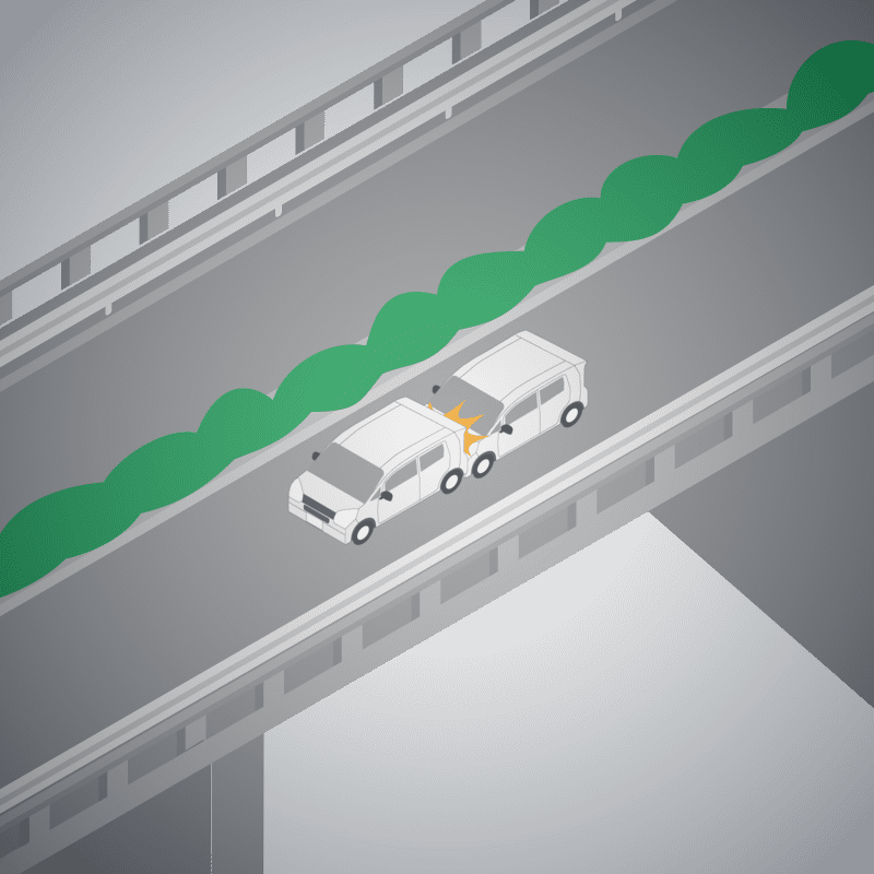 ・イラストに使用している各要素(車、背景、車、天候、信号、衝突地点など)は、代表的なイメージをイラスト化しており、色や形状等含め現実の事故の状況とは異なります。あくまで、事故のイメージとして参考までにご活用ください。