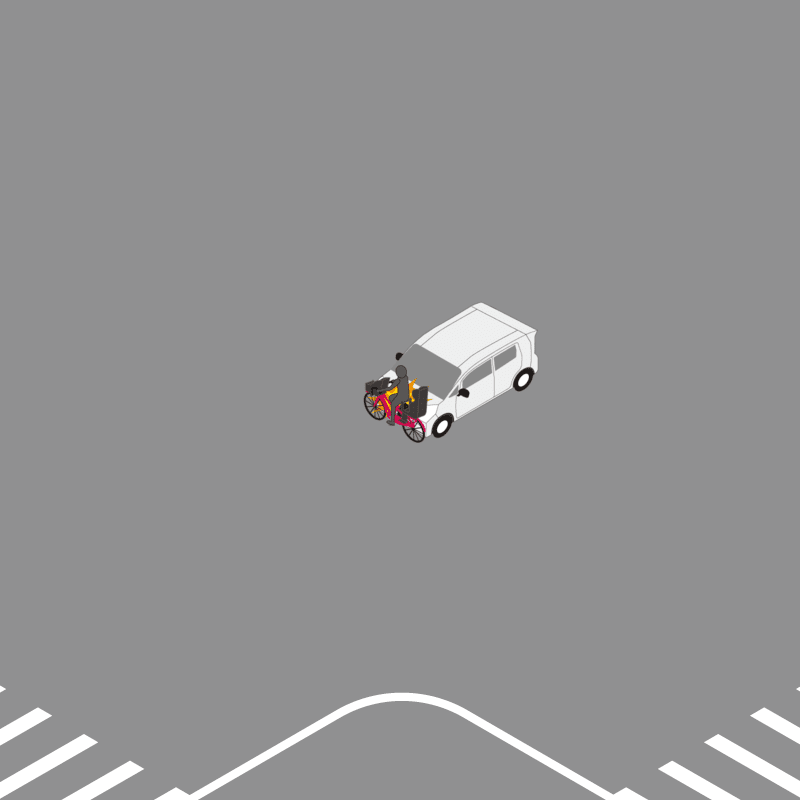 ・イラストに使用している各要素(車、背景、車、天候、信号、衝突地点など)は、代表的なイメージをイラスト化しており、色や形状等含め現実の事故の状況とは異なります。あくまで、事故のイメージとして参考までにご活用ください。