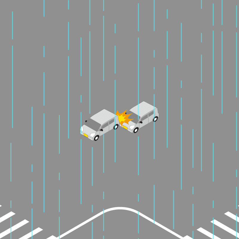 ・イラストに使用している各要素(車、背景、車、天候、信号、衝突地点など)は、代表的なイメージをイラスト化しており、色や形状等含め現実の事故の状況とは異なります。あくまで、事故のイメージとして参考までにご活用ください。