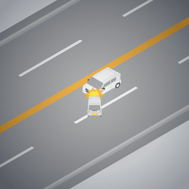 ・イラストに使用している各要素(車、背景、車、天候、信号、衝突地点など)は、代表的なイメージをイラスト化しており、色や形状等含め現実の事故の状況とは異なります。あくまで、事故のイメージとして参考までにご活用ください。