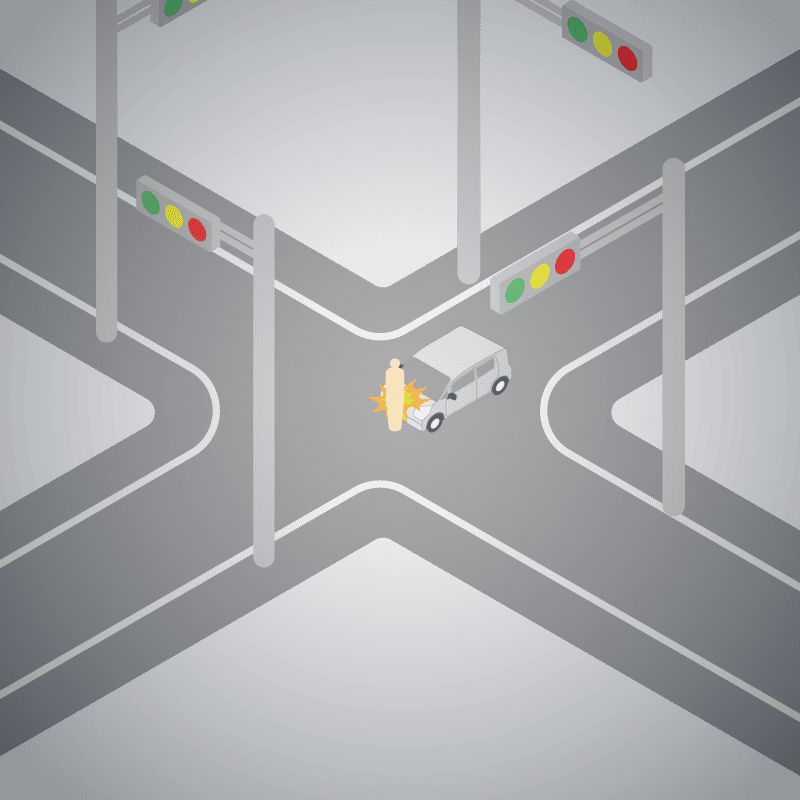 ・イラストに使用している各要素(車、背景、車、天候、信号、衝突地点など)は、代表的なイメージをイラスト化しており、色や形状等含め現実の事故の状況とは異なります。あくまで、事故のイメージとして参考までにご活用ください。