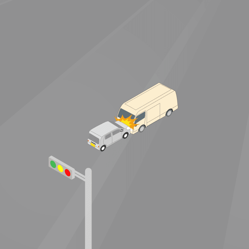 ・イラストに使用している各要素(車、背景、車、天候、信号、衝突地点など)は、代表的なイメージをイラスト化しており、色や形状等含め現実の事故の状況とは異なります。あくまで、事故のイメージとして参考までにご活用ください。
