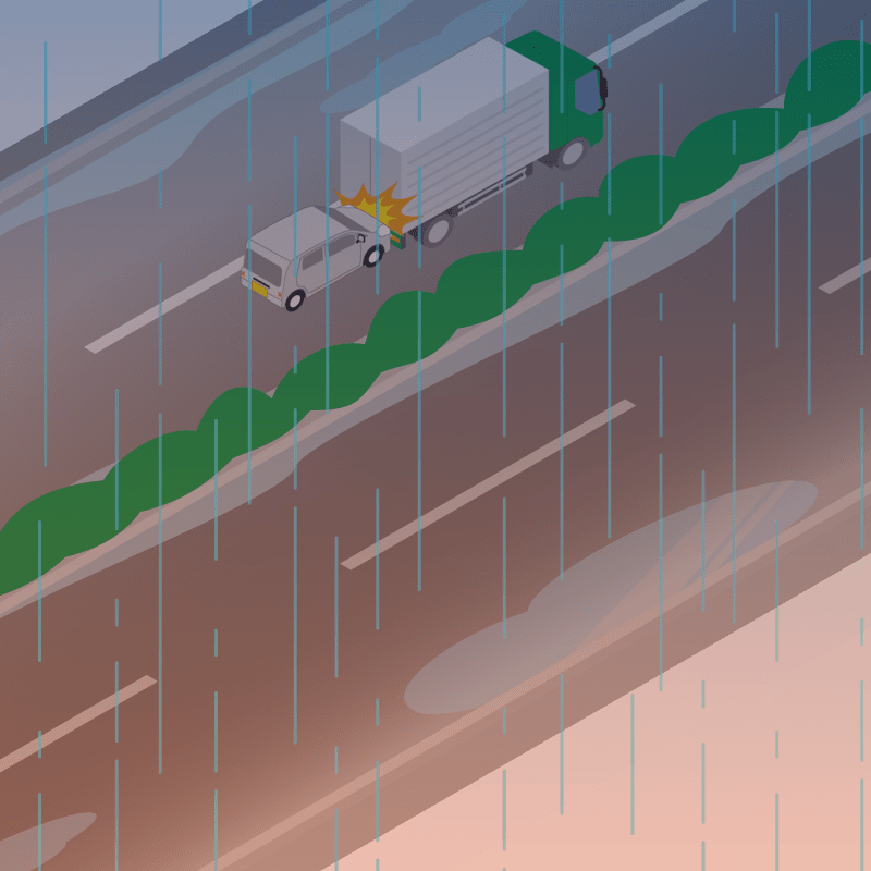 ・イラストに使用している各要素(車、背景、車、天候、信号、衝突地点など)は、代表的なイメージをイラスト化しており、色や形状等含め現実の事故の状況とは異なります。あくまで、事故のイメージとして参考までにご活用ください。
