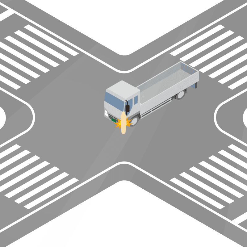 ・イラストに使用している各要素(車、背景、車、天候、信号、衝突地点など)は、代表的なイメージをイラスト化しており、色や形状等含め現実の事故の状況とは異なります。あくまで、事故のイメージとして参考までにご活用ください。
