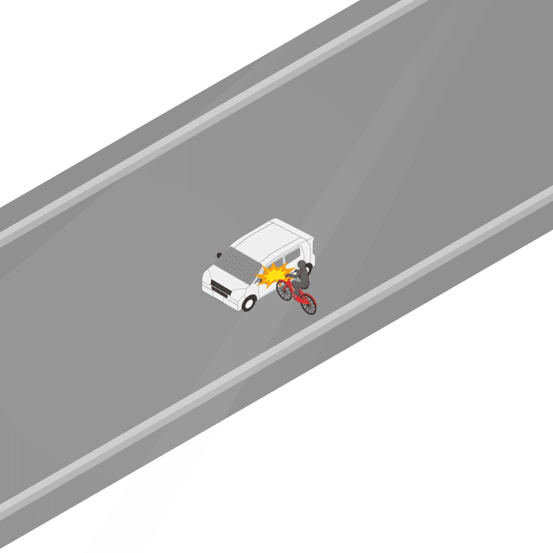 ・イラストに使用している各要素(車、背景、車、天候、信号、衝突地点など)は、代表的なイメージをイラスト化しており、色や形状等含め現実の事故の状況とは異なります。あくまで、事故のイメージとして参考までにご活用ください。