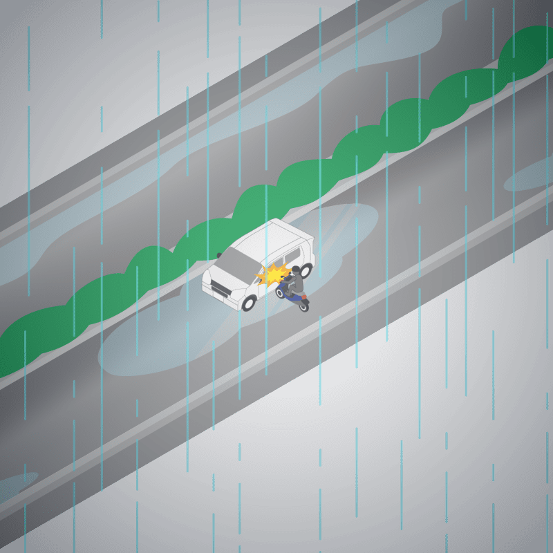 ・イラストに使用している各要素(車、背景、車、天候、信号、衝突地点など)は、代表的なイメージをイラスト化しており、色や形状等含め現実の事故の状況とは異なります。あくまで、事故のイメージとして参考までにご活用ください。