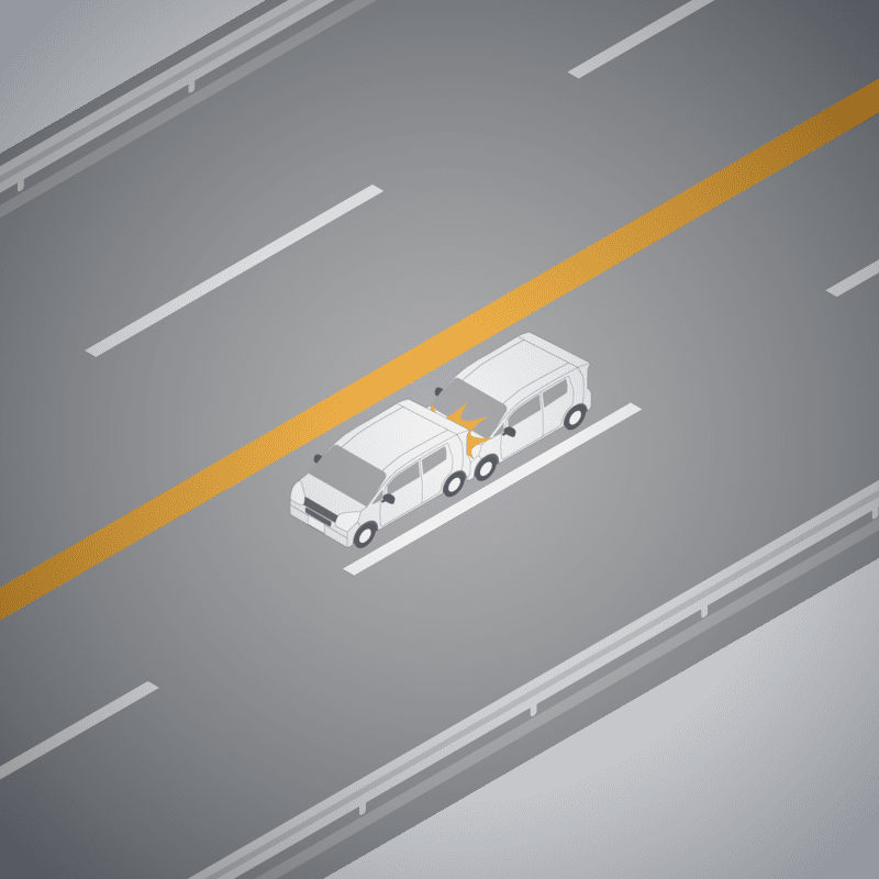 ・イラストに使用している各要素(車、背景、車、天候、信号、衝突地点など)は、代表的なイメージをイラスト化しており、色や形状等含め現実の事故の状況とは異なります。あくまで、事故のイメージとして参考までにご活用ください。