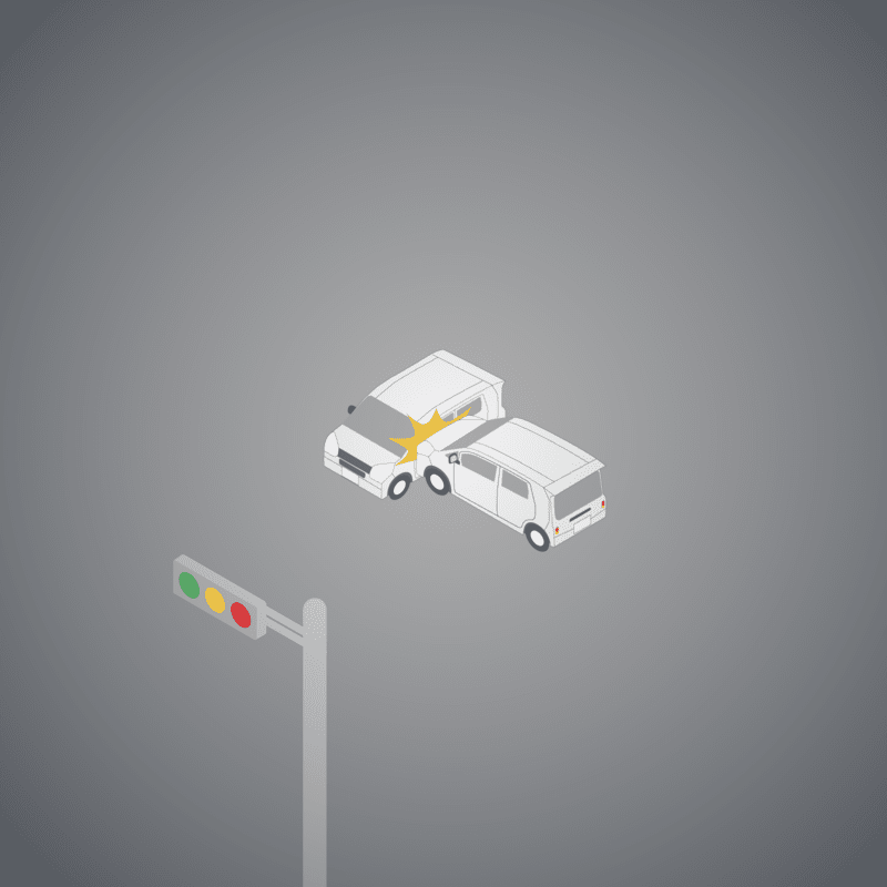 ・イラストに使用している各要素(車、背景、車、天候、信号、衝突地点など)は、代表的なイメージをイラスト化しており、色や形状等含め現実の事故の状況とは異なります。あくまで、事故のイメージとして参考までにご活用ください。